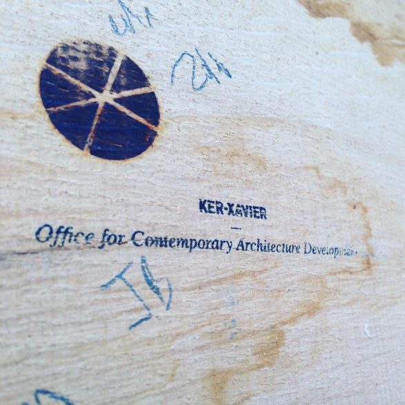 Mobilier de l’exposition conçu par Benoît Maire pour Ker-Xavier, fabriqué par Jean Bergeron.