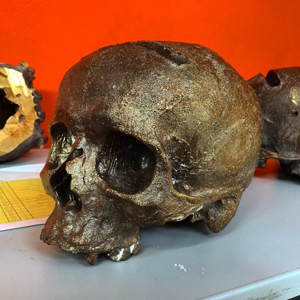 Erik Nussbicker a plusieurs projets avec Vent des Forêts. En plus de moules à Kouglof, le motif des crânes humains est aussi à l’honneur dans une œuvre en cours de réalisation avec les enseignants et élèves de la section Fonderie du Lycée Loritz de Nancy. En effet, des Crânes Psychopompes, travaillés pour faire du son avec le vent, sont l’objet de la recherche de deux étudiants pour leur diplôme option fonderie.