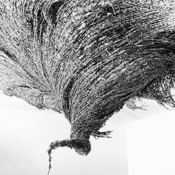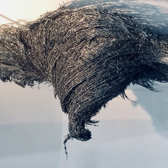 Dans la grange de Nicey-sur-Aire, Abdul Rahman Katanani a produit une dizaine d’œuvres supplémentaire à partir de ses matériaux de prédilections, comme le fil barbelé ou des objets récupérés (bidons métalliques, tôles ondulées), collectés chez des ferrailleurs ou auprès d’entreprises et d’artisans locaux. On trouve dans ces œuvres des champignons sur des troncs, des spirales en fil de fer, une silhouette d’enfant en tôle ondulée…