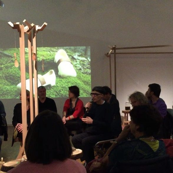 Au 4ème étage du Centre Pompidou à Paris, le nouvel espace prospectif ON/OFF MUSEUM offre 400m2 aux projets inédits et expérimentaux. L’occasion pour Matali Crasset et Vent des Forêts, invités par la commissaire Alicia Knock, de poser sur la collection d’objets design We Trust in Wood un regard différent. Faits main par des artisans meusiens, ils dialoguent dans l’espace d’exposition avec le travail de l’artiste albanais Endri Dani pour bousculer les nomenclatures et expérimenter ce laboratoire de création. Dans ce lieu qui accueille aussi des projections, des performances et des conférences, Matali Crasset continue la conversation avec les artisans qui collaborent avec elle au projet.