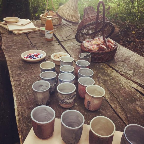 Ces créations sont le fruit d’une collaboration entre la designer Matali Crasset, des artisans et des fournisseurs locaux : les ouvriers de l’entreprise Gigot (Varney, 55) ont conçu les ossatures métalliques, les menuisiers de l’association Les Compagnons du Chemin de Vie (Lérouville, 55) ont effectué en forêt la pose du chaume et les habillages bois, l’ébéniste Christophe Rimlinger – Les Meubles de mon Grand-Père – (Villotte-sur-Aire, 55) a fabriqué les mobiliers intérieurs, les élèves du lycée professionnel Ligier-Richier (Bar-le-Duc, 55) ont installé les escaliers, le fabricant Four ‘Grand-Mère’ a construit les fours à bois (Jeanménil, 88) et le chaudronnier Dominique Rennesson a réalisé les petits accessoires (Saint-Mihiel, 55). Le projet a fait le choix de privilégier des matériaux régionaux : le bardage en bois de Douglas a été fourni par l’entreprise Fenneteau Bois (Rambervillers, 88), les « essis » tuiles traditionnelles en bois de Douglas ont été préparé par Guy Vlaemynck (Rupt-sur-Moselle, 88), le roseau de Camargue a été récolté par l’entreprise Jean-Renaud Prévot (Vauvert, 30), le bois de frêne et de chêne pour l’habillage intérieur a été débité par la la scierie Denée (Villers-sur-Meuse, 55).
