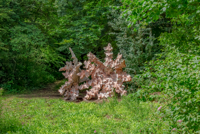 264Vincent Cardoso assemble et érige des feuilles de Chardon-Marie cueillies le long des sentiers. Il joue avec les détails si caractéristiques de la plante : bords découpés, courbes ondulées et nervures très marquées. Chaque sculpture procède d’un tirage unique grâce à la technique de fabrication d’un moule à ‘creux perdu’.