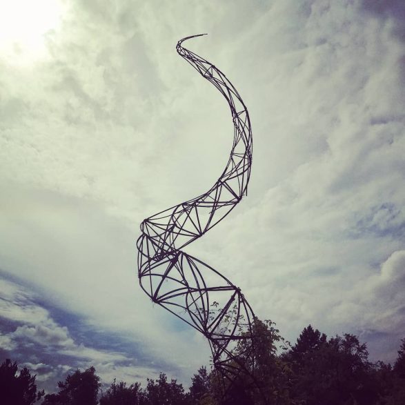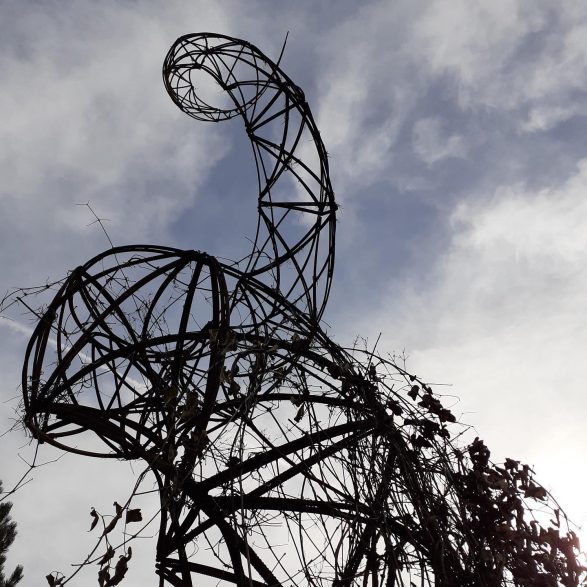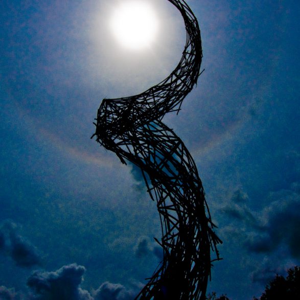 086Byoung-Tak Moon fait émerger du sol une structure métallique tressée de tiges de bois telle la queue d’un gigantesque dragon enfoui dans les entrailles de la Terre. Figure mythologique des légendes asiatiques qui symbolise les forces de la nature et ses richesses, il est prêt à resurgir à tout moment pour rappeler aux hommes l’attention qu’ils doivent porter à leur environnement, leurs traditions, leur histoire.