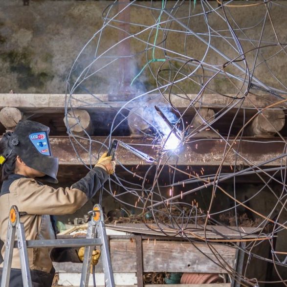 Cette œuvre a été réalisée avec l'aide de l'éleveur Cyril Weisse, la chaudronnerie Rennesson et les bénévoles du Vent des Forêts.