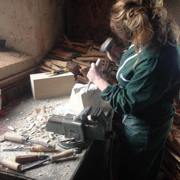 pierre calcaire d’Euville, bois d’acacia, chêne, tissus