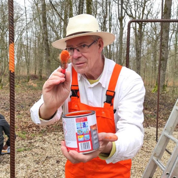 Installation de l'œuvre en forêt par Marin Kasimir et l'équipe de VDF ©Fabien de Cugnac