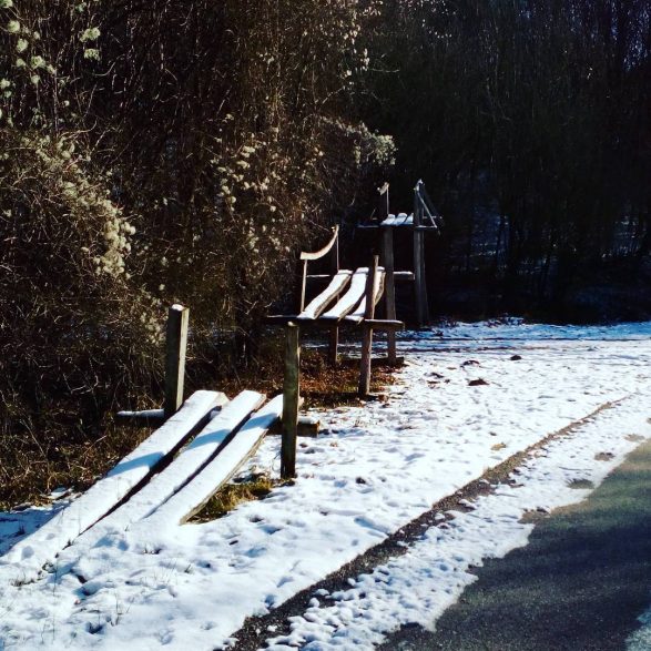 001Maciej Albrzykowski échafaude le long de la route de Louvent un pont en bois en trois parties, qui ne traverse aucune voie et perd sa fonctionnalité. Il prend naissance au sol, s’élève progressivement, se façonne, se précise, s’affirme comme un objet-pont, une sculpture, un évènement dans le paysage.