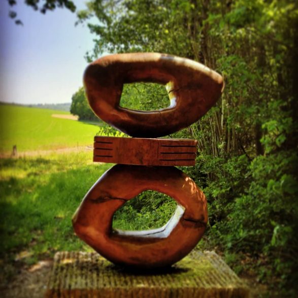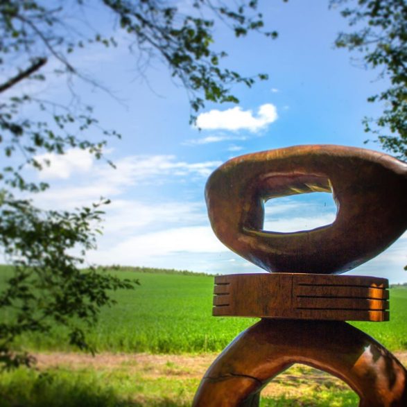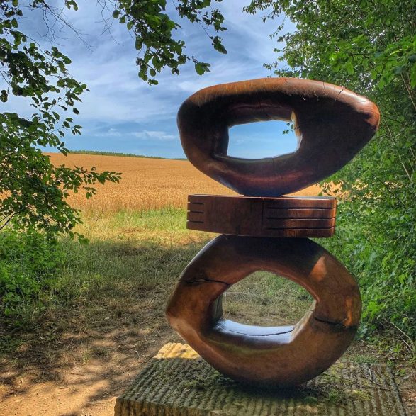 159Claudia Comte personnifie ses sculptures en leur attribuant un prénom, chacune faisant ainsi partie d’un ensemble, d’une famille. Saphira se détache telle une silhouette devant un paysage ouvert. Les multiples motifs naturels composent une toile de fond rythmée et graphique avec laquelle les courbes de cette sculpture dialoguent.