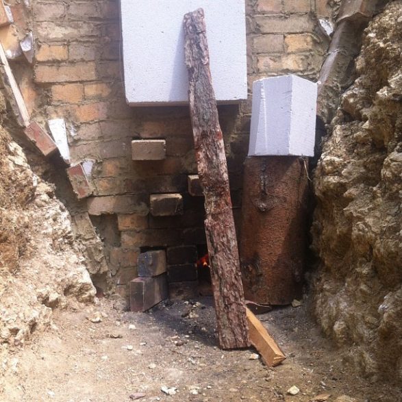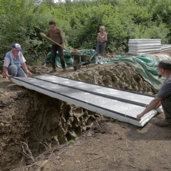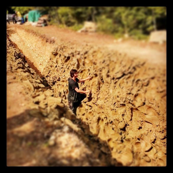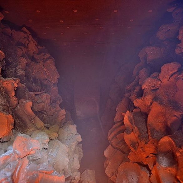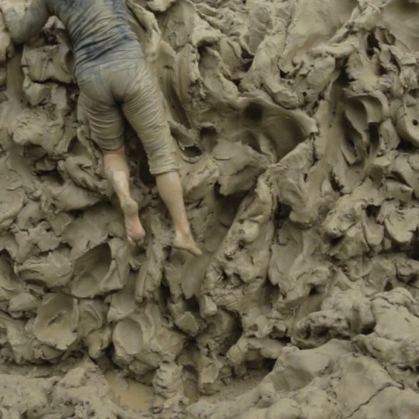181Alexandra Engelfriet offre un passage halluciné de dix mètres de long aux parois martelées, craquelées, brûlées. Cette tranchée béante est la trace d’une performance : sa lutte acharnée pour modeler vingt-deux tonnes d’argile brute avec ses poings, ses genoux, ses mains. Les murs ainsi sculptés ont été pétrifiés sur place par une cuisson au bois alimentée jour et nuit. Cette œuvre témoigne de la mise à l’épreuve du corps avec la résistance et la plasticité de la terre humide et de la violence des gestes.