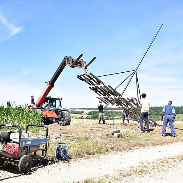 L'œuvre est réalisée avec le soutien des élèves en spécialisation Technicien Soudage du lycée professionnel Ligier Richier (Bar-le-Duc, 55), l'entreprise EMS Location (Chauvoncourt, 55) et de la Chaudronnerie Rennesson (Saint-Mihiel, 55) et avec l’aide des bénévoles de Vent des Forêts.