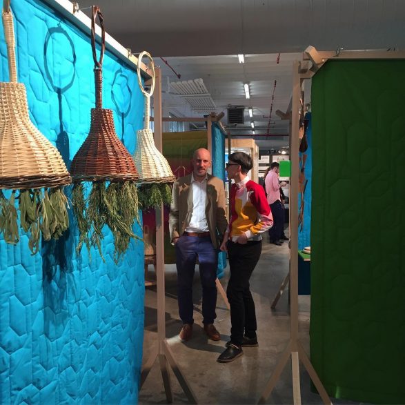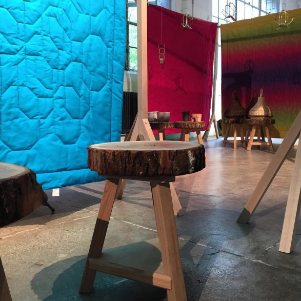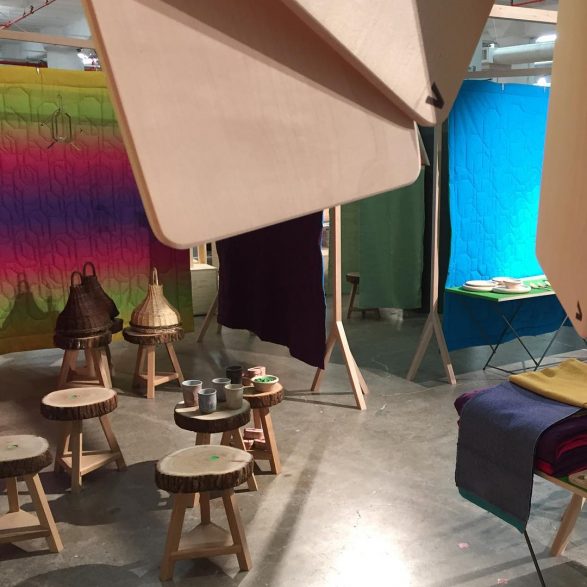 A New-York, le salon annuel WantedDesign présente une série d’expositions innovantes et interactives. Invités par l’ambassade de France dans le cadre du programme OuiDesign, Matali Crasset et le centre d’art Vent des Forêts présentent la collection We trust in Wood, fruit de leur collaboration en cours avec une sélection d’artisans meusiens. Quand la modestie et la précision du geste du tourneur sur bois et de la tisserande voisinent dans les locaux de l’Industry City avec le design expérimental.