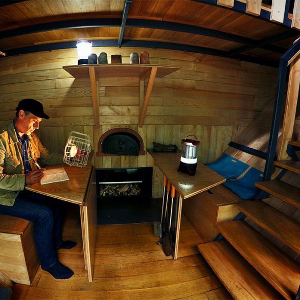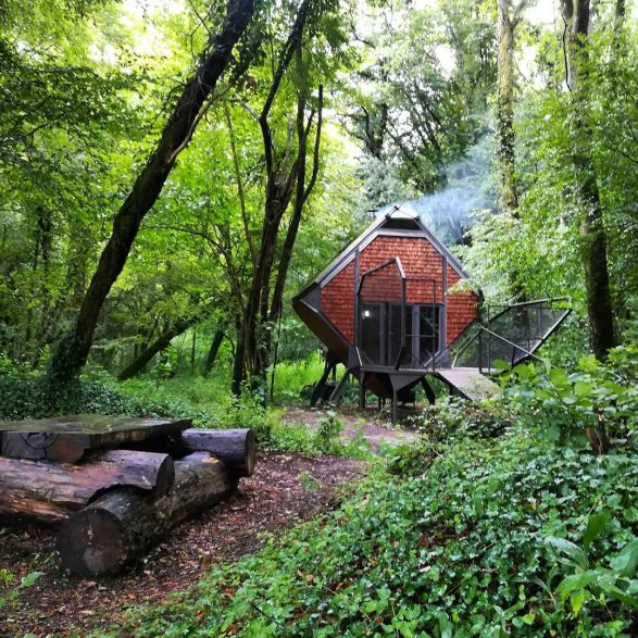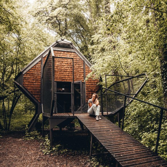 Pour le voyageur en quête d’essentiel, le Nichoir réalisé avec la designeuse matali crasset est un refuge idéal. Dissimulé en creux de vallon, dans les bois de Fresnes-au-Mont, près d’un ruisseau, on y accède par un petit pont creusé à même un tronc. Ses matériaux nobles -chêne, frêne, sapin de Douglas- issus de forêts locales, offrent un confort simple dans un espace optimisé. Sa terrasse suspendue et son hamac permettent de se reposer, d’observer les oiseaux, de rêver…