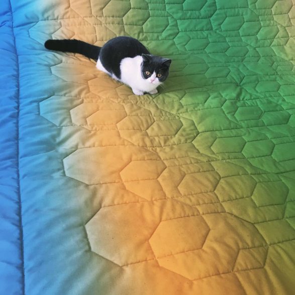 Couverture surpiquée en coton imprimé.