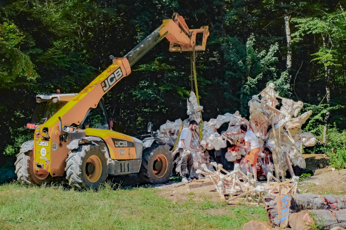 L’immersion des artistes au sein d’un contexte rural fait partie de l’aventure de Vent des Forêts. Logés chez l’habitant, ils sont accompagnés par un vaste réseau de professionnels : plus de 80 artisans, entreprises spécialisées et lycées d’enseignement professionnel mettent à disposition des espaces mais aussi leur savoir-faire pour des expérimentations inédites avec un chaudronnier, un tailleur de pierre, un sculpteur sur bois, un souffleur de verre ou encore des élèves en section fonderie. Tous mettent à disposition leur expertise pour accompagner les artistes dans leurs recherches et la mise en œuvre de leurs projets.