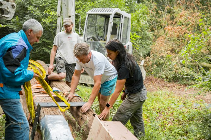 Vent des Forêts bénéficie du soutien de plus de 120 bénévoles investis toute l’année qui partagent de vrais temps d’échange avec les artistes pendant leur séjour, permettent la manutention et l’installation des œuvres en prêtant du matériel agricole, et échangent avec tous une expertise technique précieuse.