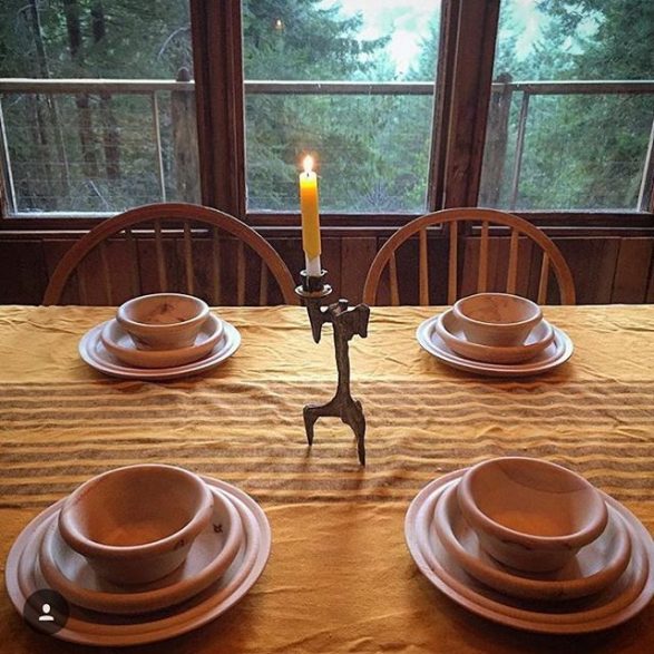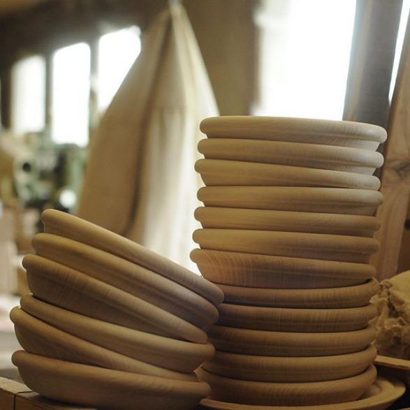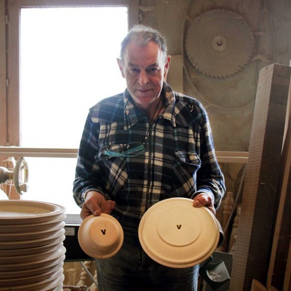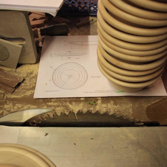 Enthousiaste et intarissable, il caresse les différentes essences de bois qu’il travaille : érable, frêne, chêne, noyer, merisier -bien sûr issu du département- mais aussi pin sylvestre, mélèze, wengé ou iroko. C’est pour son savoir-faire unique et précieux qu’il a été choisi pour tourner l’ensemble de bols, assiettes, planches et plateau dessinés par Matali Crasset. De petits compromis techniques ont été consentis pour accorder le projet de la designer et les contraintes de l’artisan pointilleux. « Je n’en revenais pas de faire une série pareille ! Pour survivre, les petites structures comme nous doivent courber l’échine, s’adapter.»