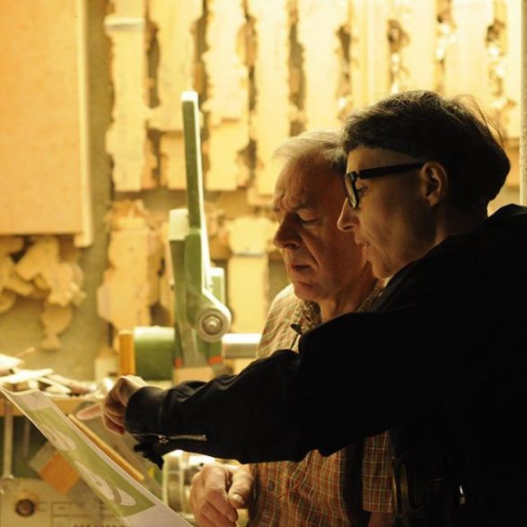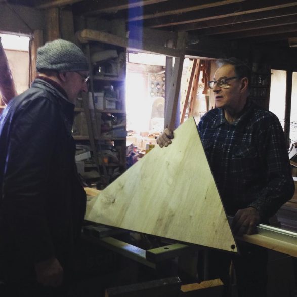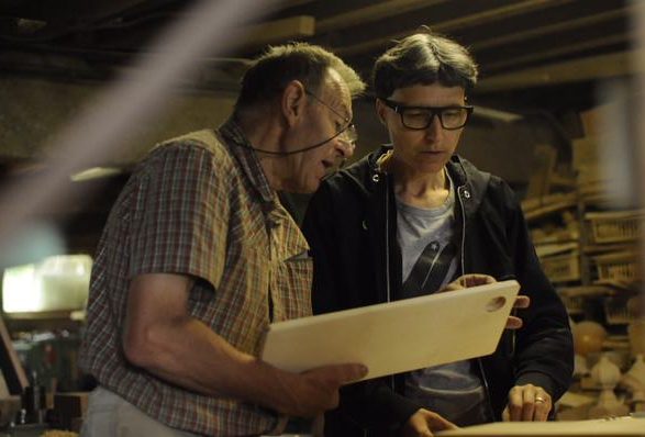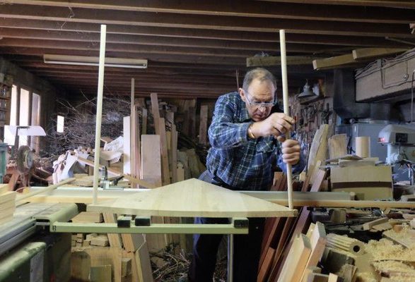 Se faufilant entre la dégauchisseuse et la scie à chantourner, il emprunte l’étroit passage qu’il s’est frayé au fil du temps dans la montagne de bois, démarre un tour dont le ronronnement anime aussitôt toute la caverne. A l’étage, ses parents, attentifs, haussent la voix pour préciser une date, un nom. La transmission de l’atelier et du savoir-faire ne sera pas facile, au moment de la retraite qu’il ne prendra pas vraiment, car peu de jeunes ont eu le goût de se former à cet artisanat très spécialisé. Dommage, car l’homme a bien plus qu’un tour de main à transmettre et Philippe Huet n’a pas d’héritier, mais un neveu ingénieur qu’il visite une fois par an au Canada d’où il revient justement. Volubile, encore émerveillé par la largeur du Fleuve Saint-Laurent et par les énormes bateaux remontant jusqu’à Montréal, il précise mais on n’en doutait pas : « Quand on travaille avec moi, on parle d’histoire, de religion, on parle de tout. »